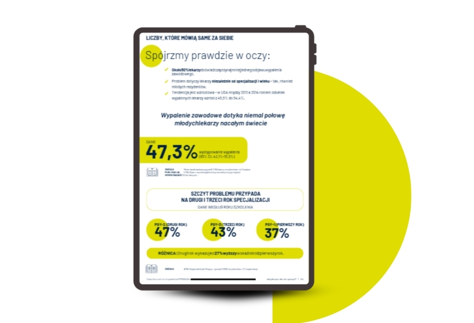Badania i raporty pokazują wysokie wskaźniki objawów wypalenia u młodych lekarzy; młodsi medycy są w grupie szczególnego ryzyka, to nie „wymysł”, tylko realny problem pierwszych lat pracy.